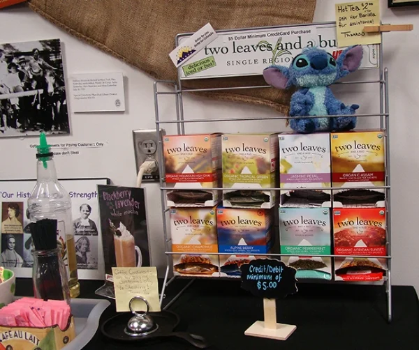 Liz prides herself in using foods from local companies. Two Leaves and a Bud tea company is located in Aspen, Colorado. You can choose herbal and caffeinated teas in sachets. Because the sachets are filled with pieces and chunks of leaves, flowers, and/or fruits, they brew a more flavorful robust cup than tea bags.