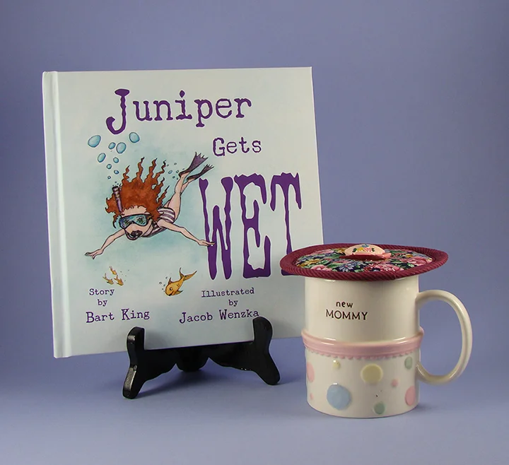 A beautiful children’s book and a Mommy mug paired with a Garden Floral Kup Kap. If you need a Daddy mug for a gift, we have several Kup Kaps to choose from!