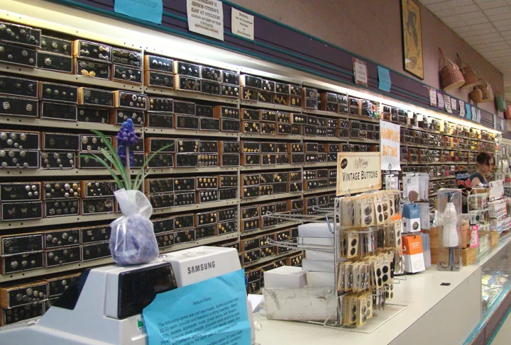 Near the front of the store was a huge box filled with thousands of buttons. The sign read “Bulk Buttons 25 cents each or $5.00 per box. I wondered how long it would take to count all those buttons!