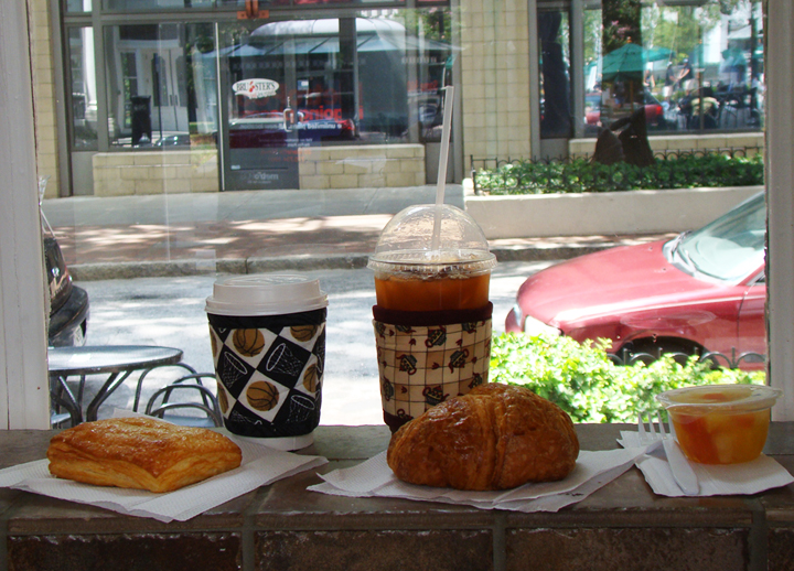 Perry and I ate at One Caffe Coffee before he taught his seminar. His latte coffee was “solid, better than Starbucks”. I enjoyed Twoleaves & a Bud peach flavor tea. Our food was fresh and tasty. That’s kool.