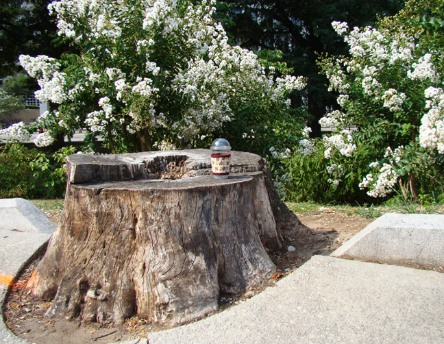 Farther on I found Hurt Park that was part of the 2007-2008 Urban Intervention: The Beltline. The exhibit by artist Pandra Williams was called “Return of the Native Garden” planted with drought-resistant plants. I found it interesting that the street side walk was originally built around trees bordering the park.
