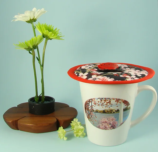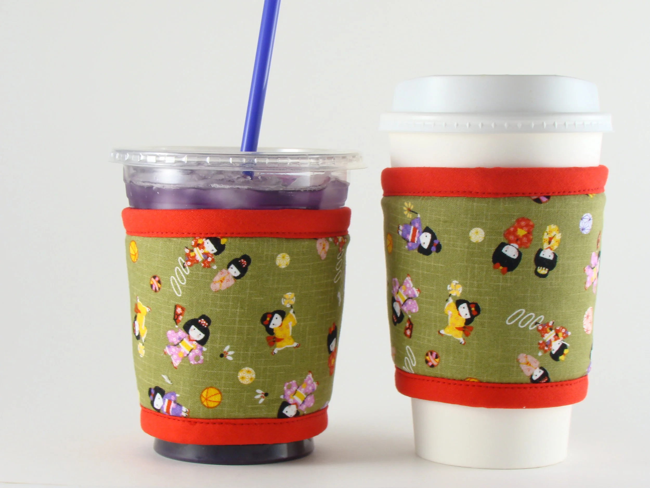 A maxim for business, even small businesses like Koffee Kompanions, is adapting designs to customers’ needs or interests. That’s why we’ve added to our products a Kup Kap insulated cup lid with Asian flowers and cherry blossoms, as well as Japanese games and cherry blossom Kup Kollar drink sleeves.