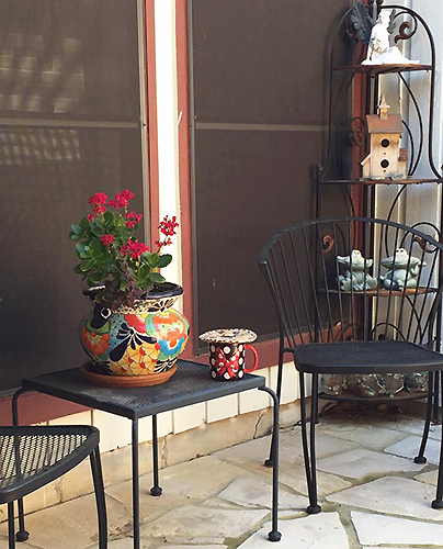 Ms Ann, the Texas teacher who loves her Kup Kollars and Kup Kaps, went on a family vacation to the beach at Port Aransas with her family. The first day back home she writes, “Not quite the beach view .... But enjoying my coffee this morning. Stays warm and no bugs. Yay for Kup Kaps!”
