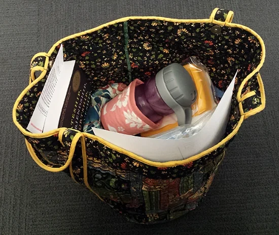 I love my OXO Strive Propel Bottle (16.9 Oz) because it’s leak proof. I can toss it in the tote bag upside down and know the contents will stay dry. I slipped on a Thinsulate insulated Kup Kollar to slow the ice melt.